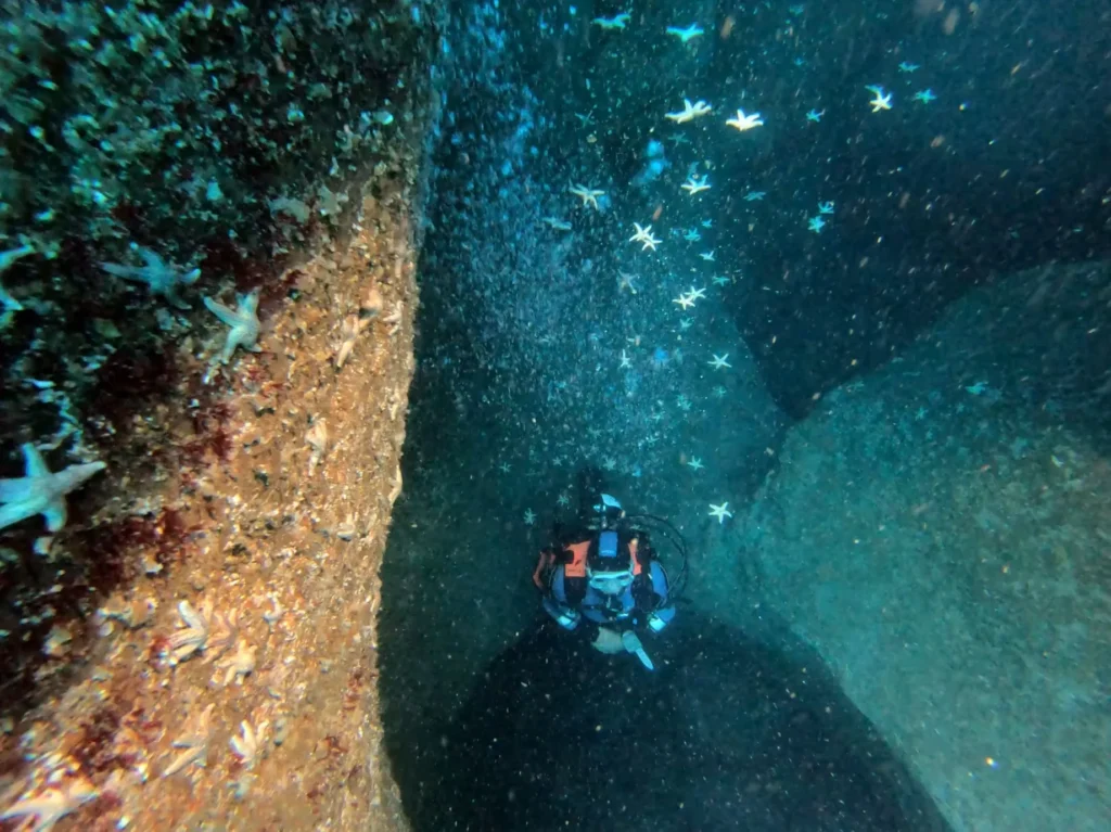 Pods of dolphins, schools of basking sharks, choughs, ravens, & Bishop’s Island, a sea stack, with sheer sides rising 40m from the sea.